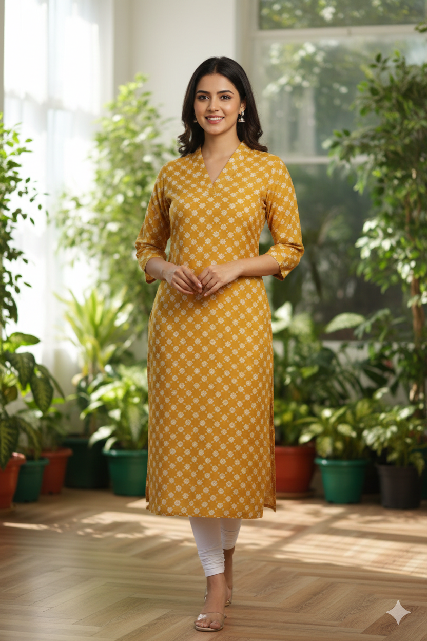 This elegant kurti is crafted from a premium silk mix cotton fabric, blending the richness of silk with the comfort of cotton. The fabric offers a soft texture with a subtle sheen, making it perfect for both festive and everyday occasions.